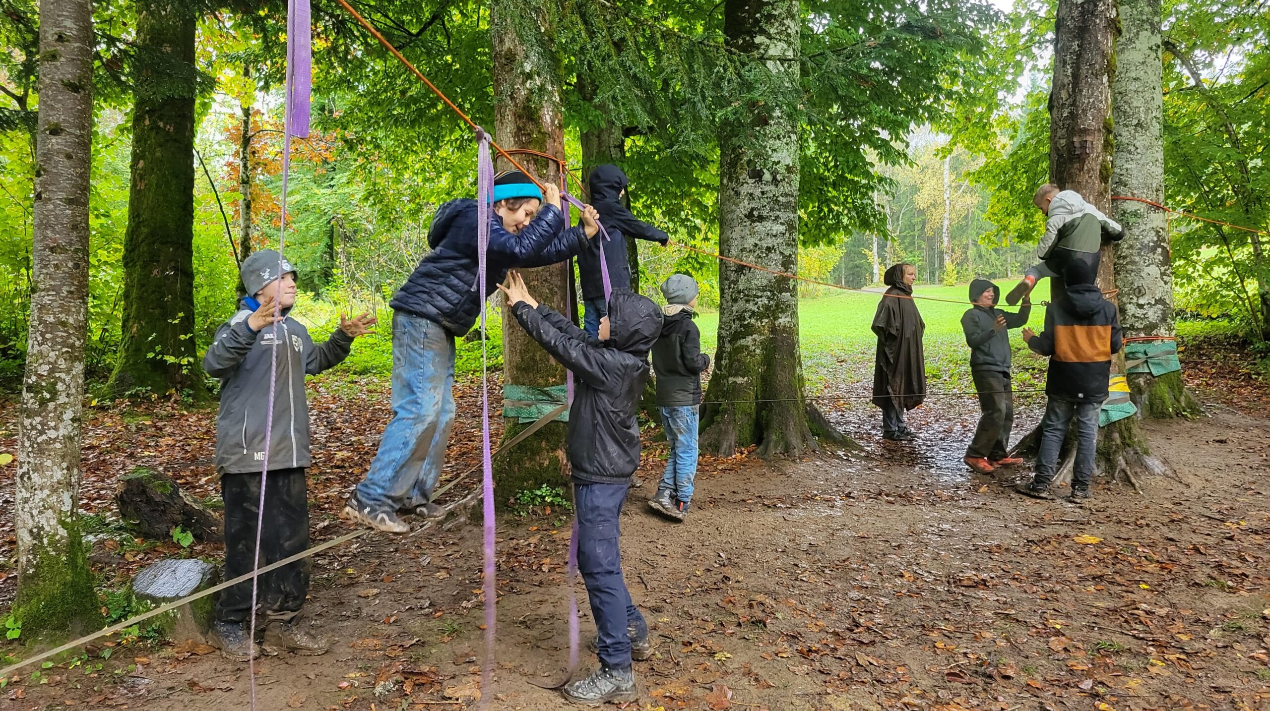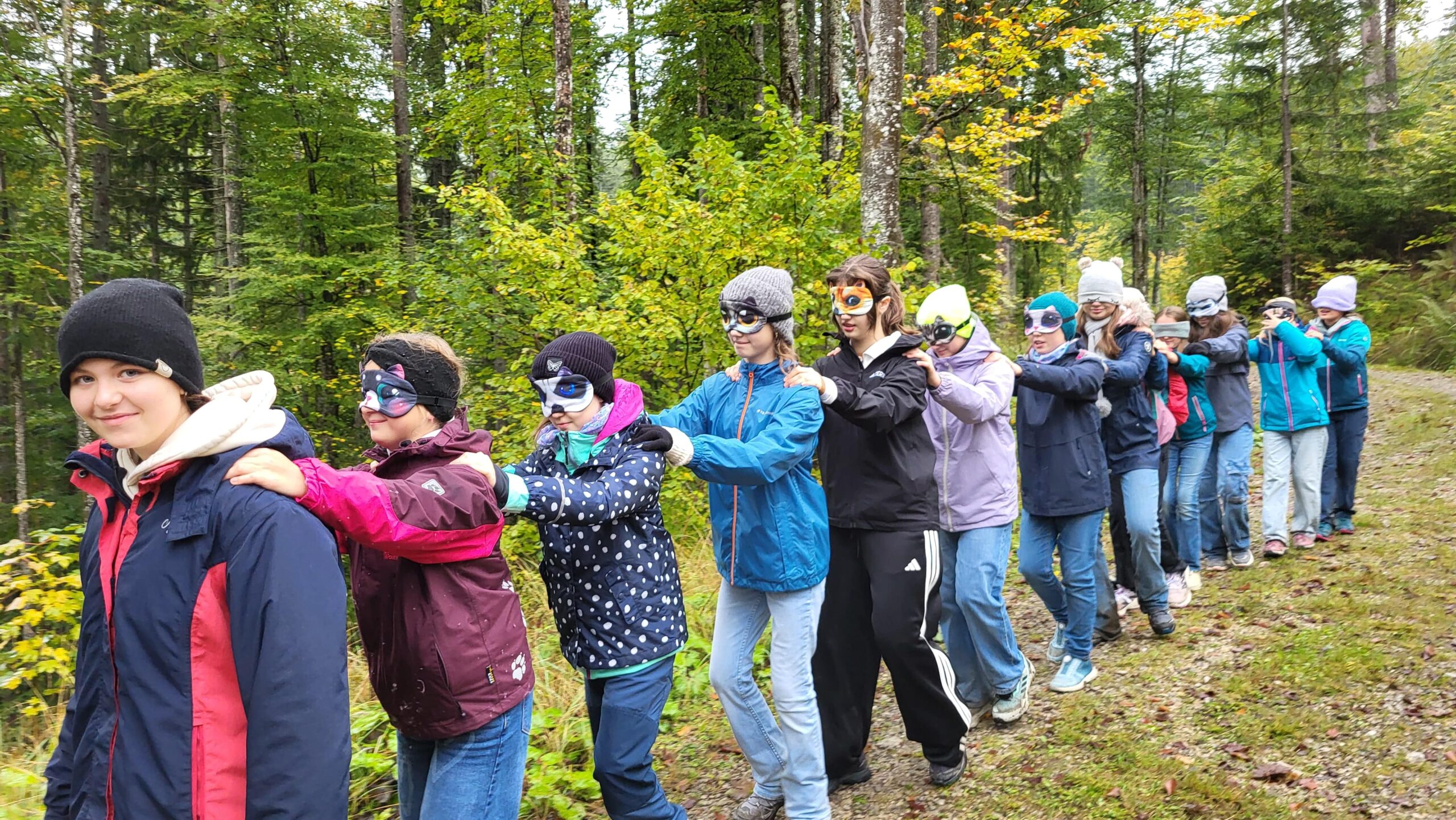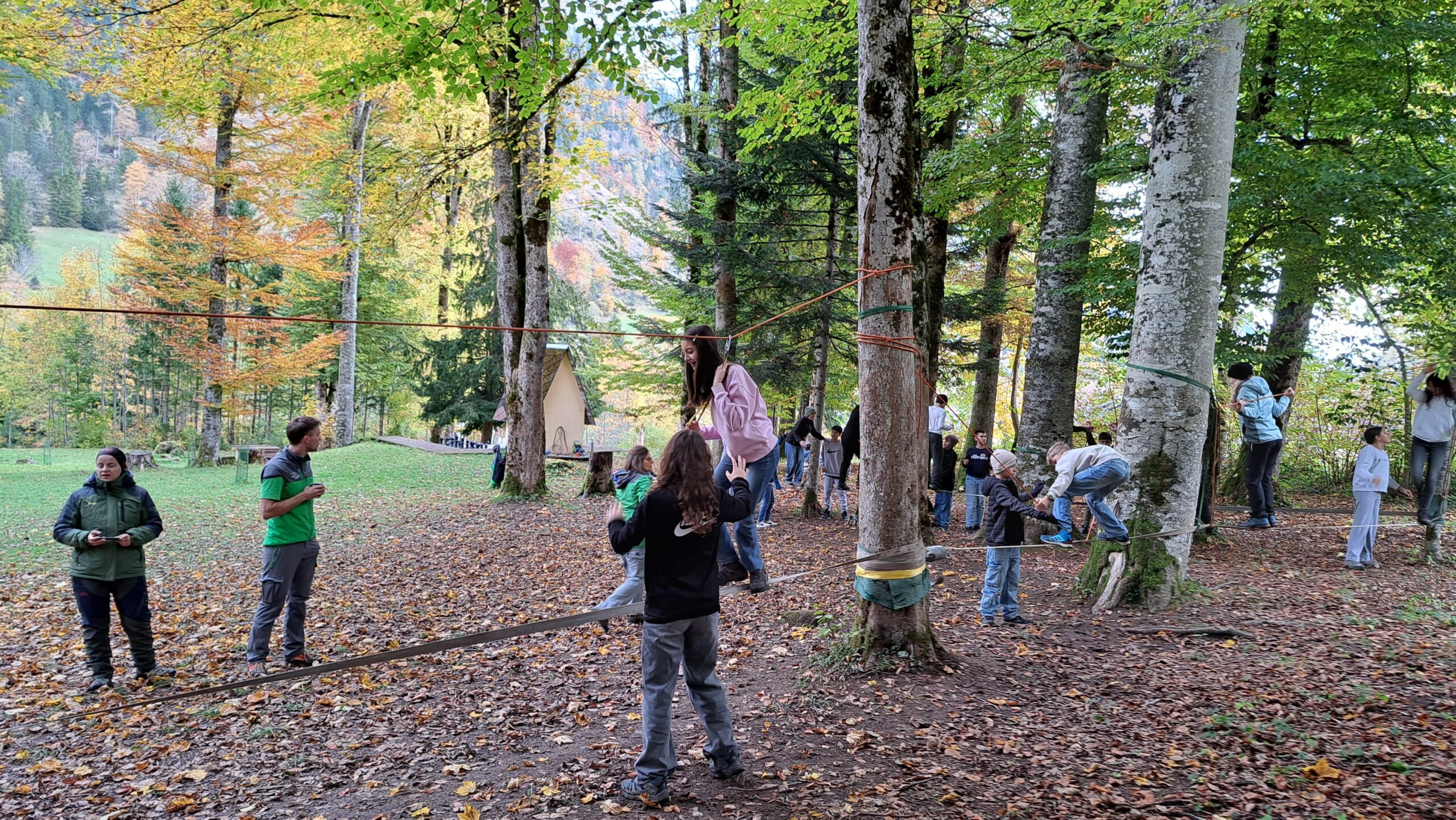 Bei einer spannenden Spurensuche im herbstlichen Wald wurden die Sinne geschärft. Die Kinder lernten, aufmerksam zu beobachten, Spuren zu deuten und die Natur bewusst wahrzunehmen. Ein weiteres Highlight war das Orientieren im Gelände: Kartenlesen, Kompassnutzung und praktische Übungen stärkten Orientierungskompetenz, Selbstständigkeit und Verantwortungsbewusstsein. Die diversen Outdoor-Aktivitäten forderten Mut, Geschick und Teamgeist. Niedrige Seilaufbauten, Spiele wie „Lava“ im Wald, Lagerfeuer bei Mondschein und eine aufregende Nachtwanderung schweißten die Klassengemeinschaft zusammen.