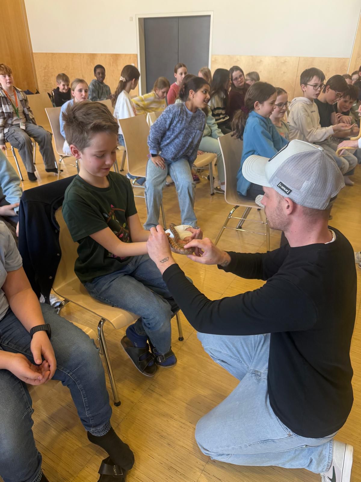 Gerade der direkte Kontakt mit den Tieren machte den Vormittag so besonders: Viele Schüler:innen überwanden ihre anfängliche Scheu und begegneten den Tieren mit wachsendem Interesse und Respekt. So wurde Biologie nicht nur erklärt, sondern wirklich erfahrbar gemacht.