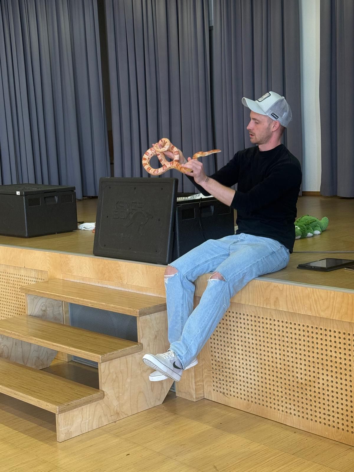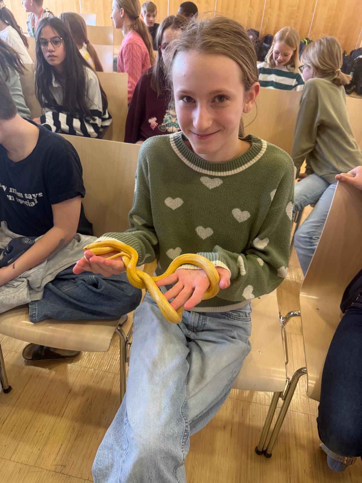 die Kornnattern Johnny und Butter, die von vielen mutigen Schülerinnen und Schülern sogar gehalten wurden,