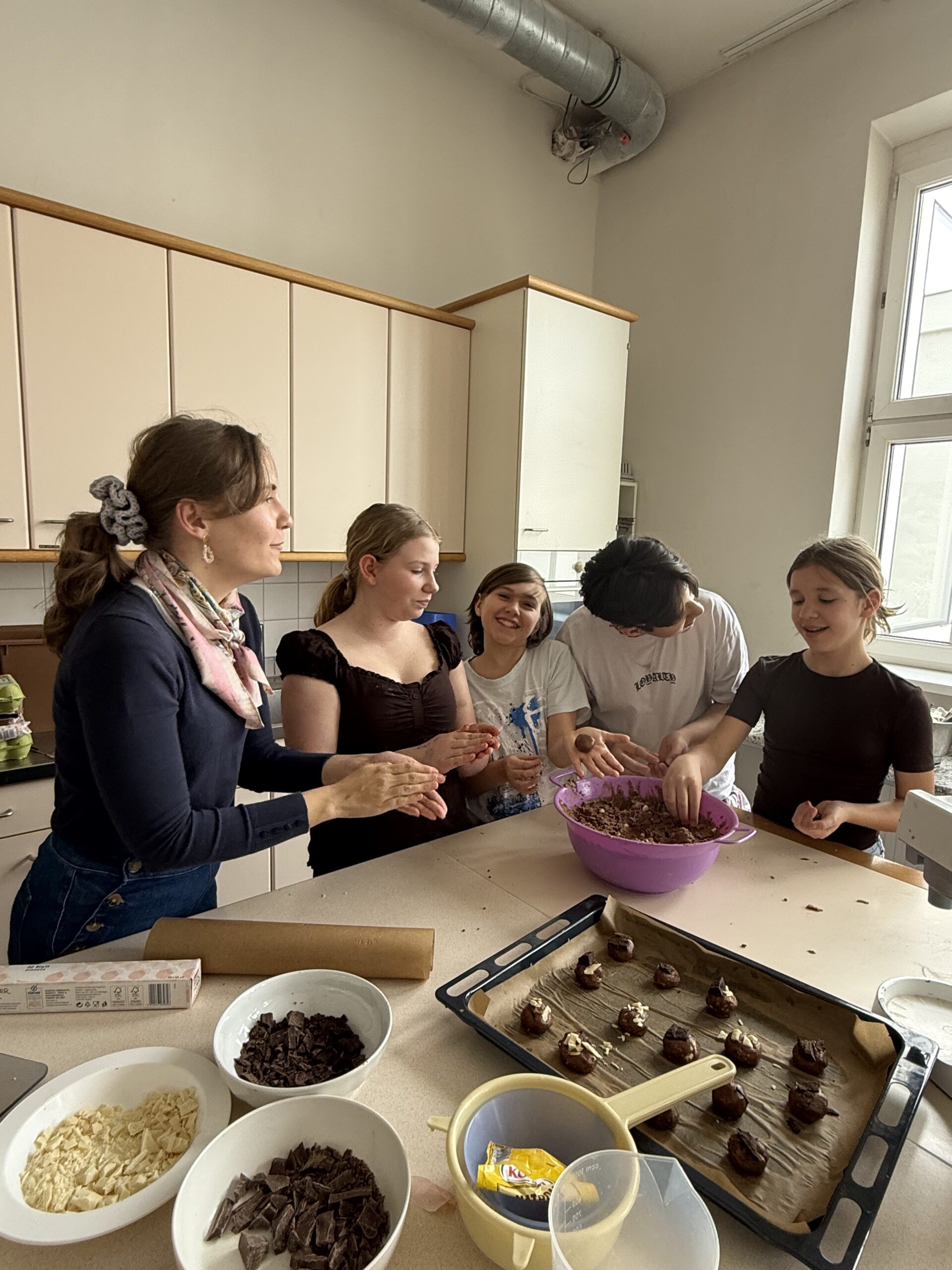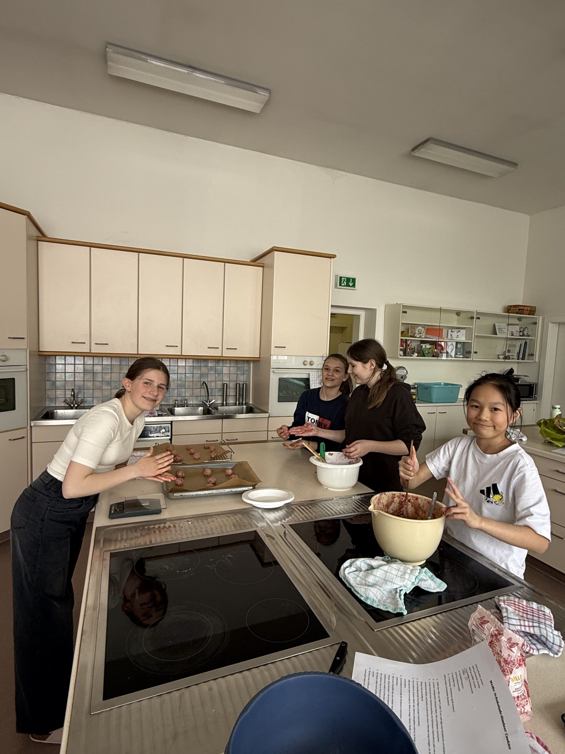 Am 16. April backten schließlich zwölf engagierte Schüler:innen drei verschiedene Cookie-Sorten. Anschließend wurden die Produkte im WIN-Unterricht verpackt und in der darauffolgenden Pause erfolgreich verkauft. Der erzielte Erlös wird an das Welser Tierheim gespendet.