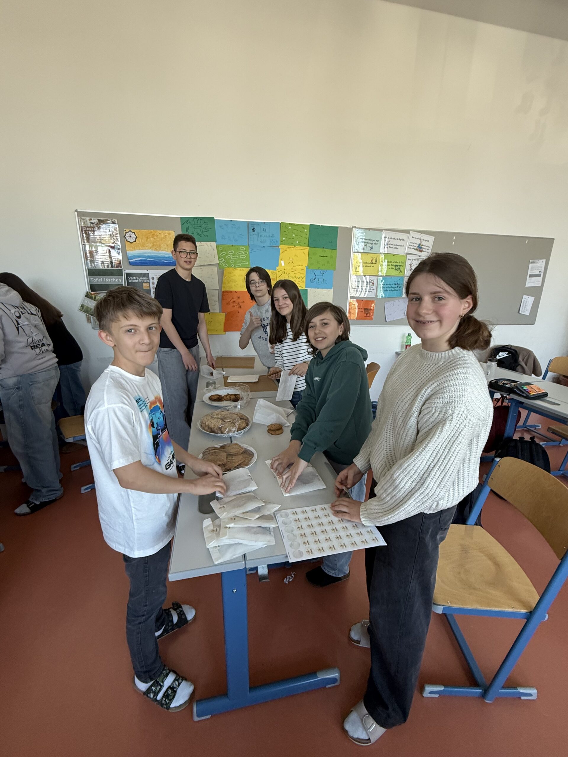 Im Zuge dieses Unterrichts bereitete die 3B ihr Cookie-Projekt sorgfältig vor. Dazu gehörten unter anderem die Festlegung der Preise, die Auswahl der Sorten, die Gestaltung eines Logos sowie die Erstellung von Werbeplakaten und die Organisation des Verkaufs.