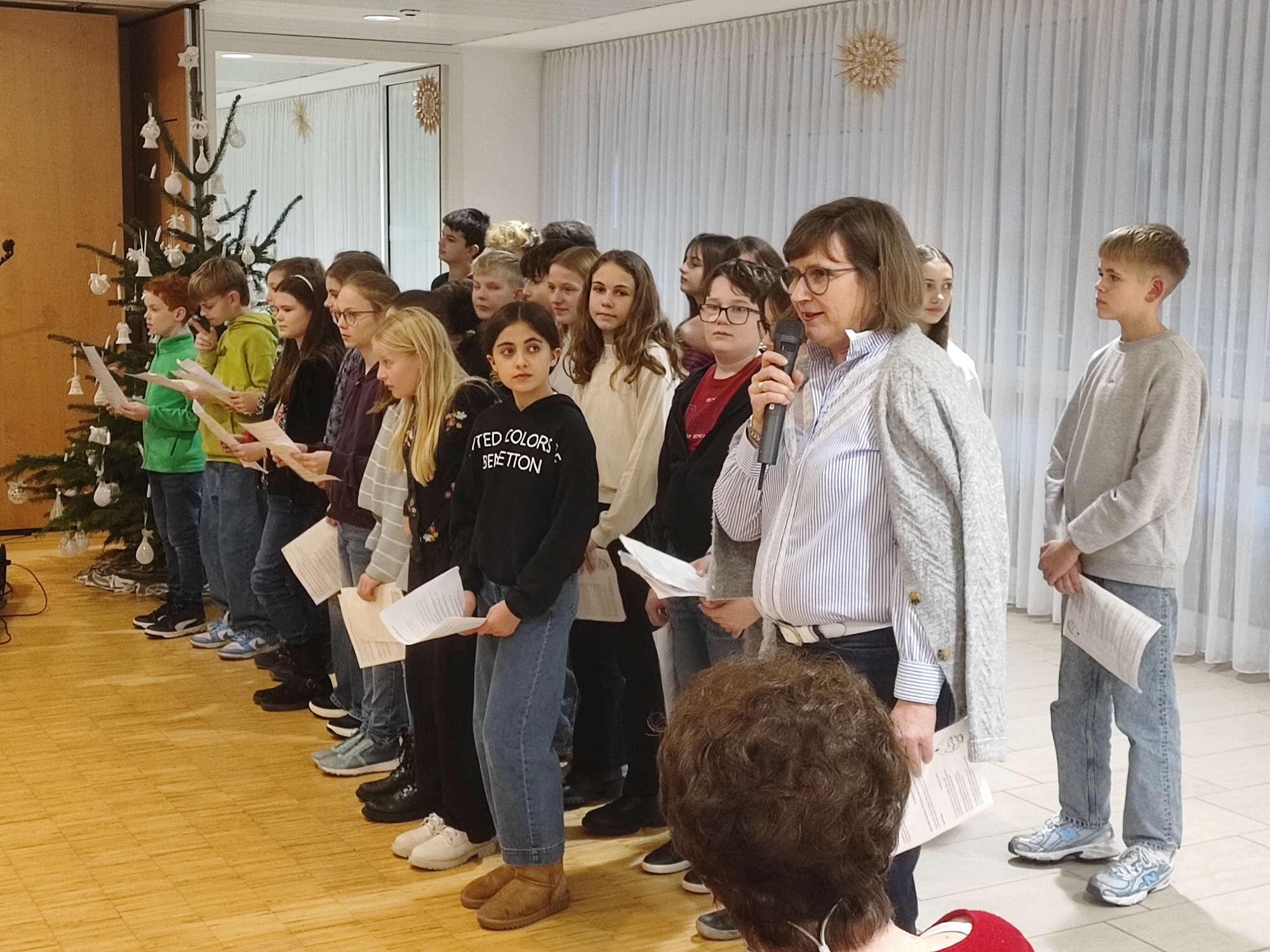 Eine schöne Tradition an unserer Schule ist es, dass eine Klasse im Advent das Alten- und Pflegeheim Bruderliebe in Wels besucht, um den Bewohnerinnen und Bewohnern ein besonderes Geschenk zu machen: eine Aufführung mit weihnachtlichen Liedern und Texten.