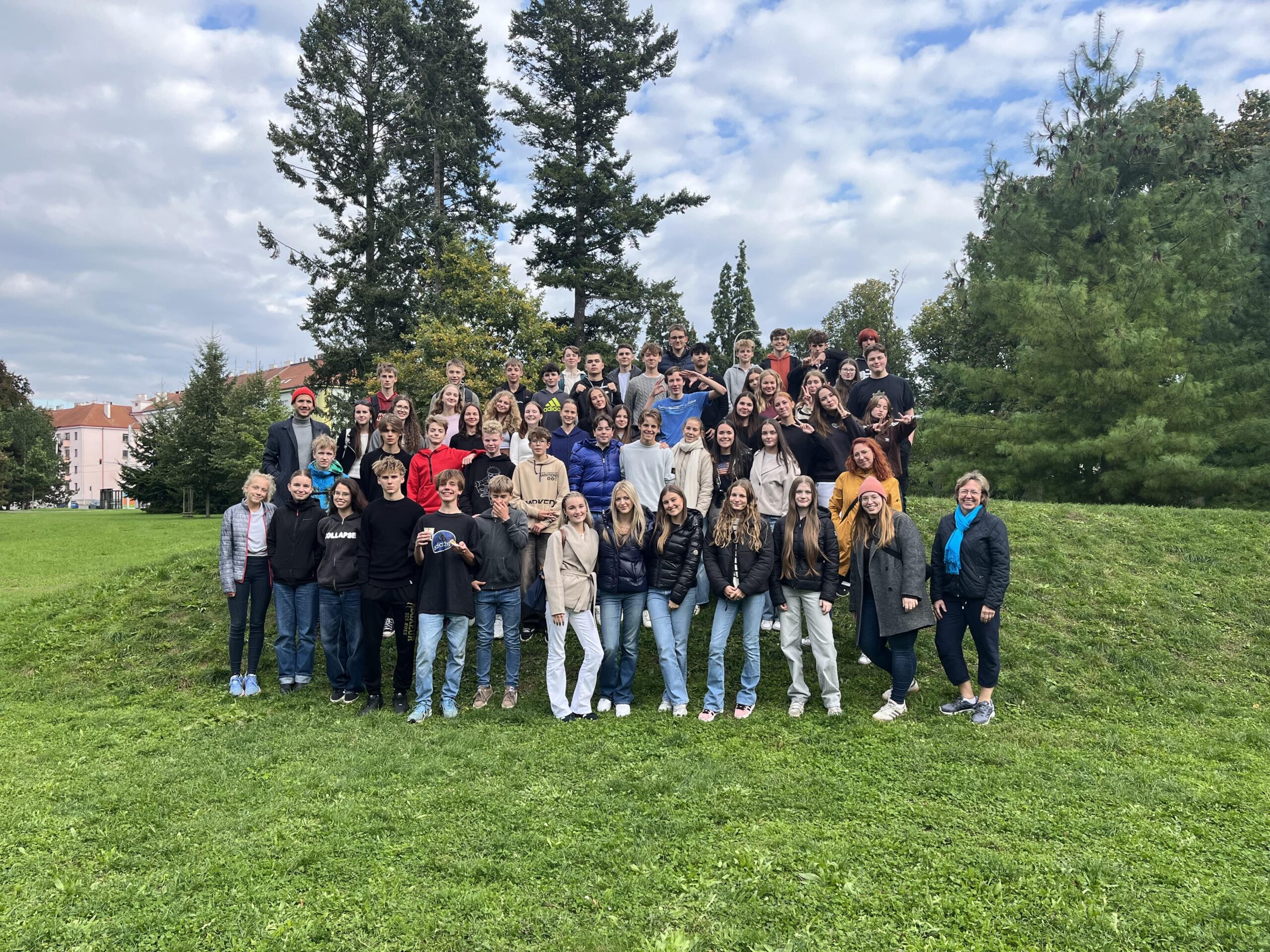 Ziel für den Austausch über Erasmus+ war die Partnerschule Gymnázium Boženy Němcové in Hradec Králové (Königgrätz). Die Schüler*innen nahmen am Deutsch-, Französisch- und Englischunterricht teil und bereiteten mit tschechischen Gleichaltrigen Präsentationen zu Sehenswürdigkeiten des Prager Königswegs vor. Abgerundet wurde der Besuch in Hradec Králové durch ein gemeinsames Picknick mit guten Gesprächen und einem Fußballspiel. Die Partnerschule machte sich anschließend am Mittwoch mit einer Klasse auf den Weg nach Prag, um den Königsweg gemeinsam zu besichtigen und den Austausch der Schüler*innen weiter zu festigen.