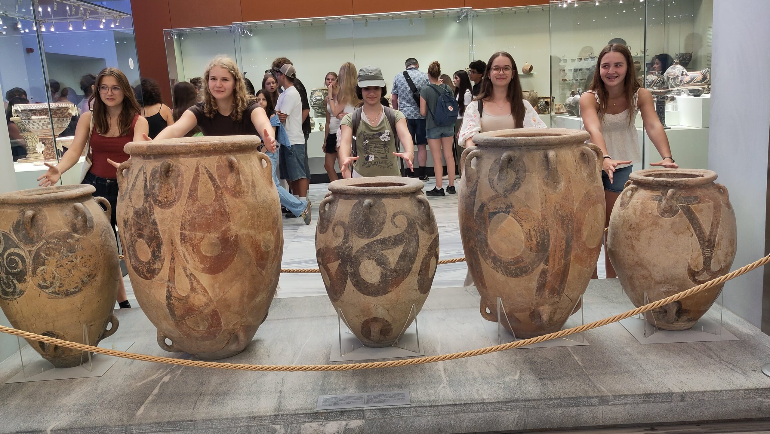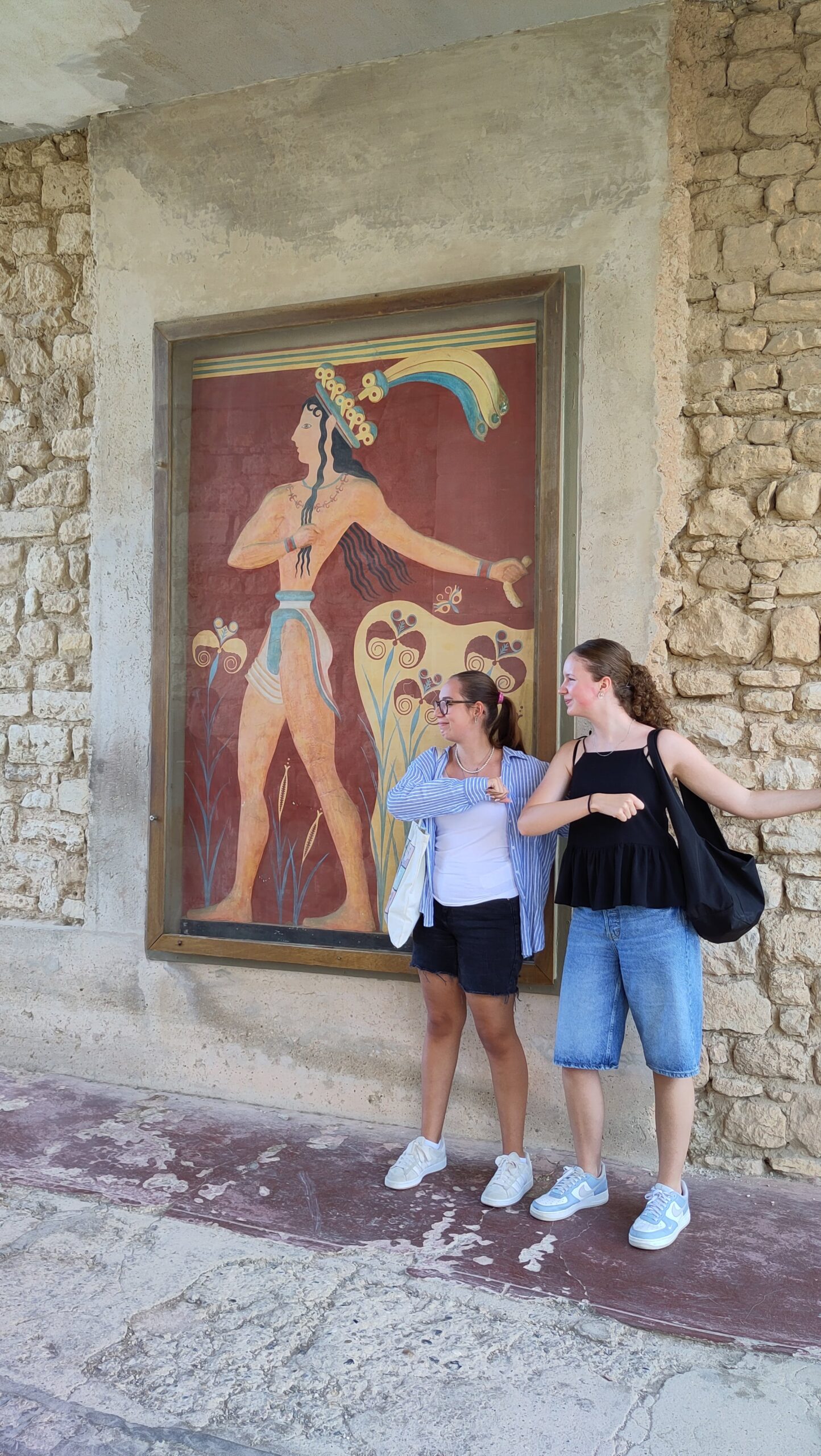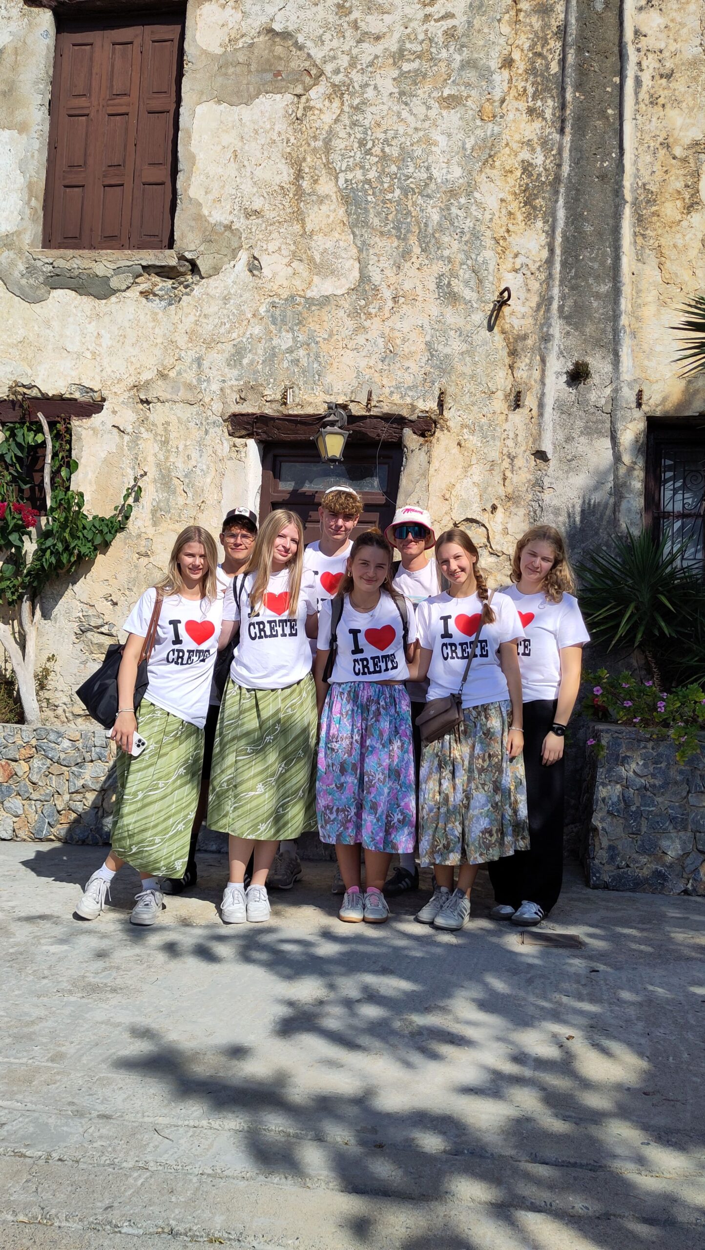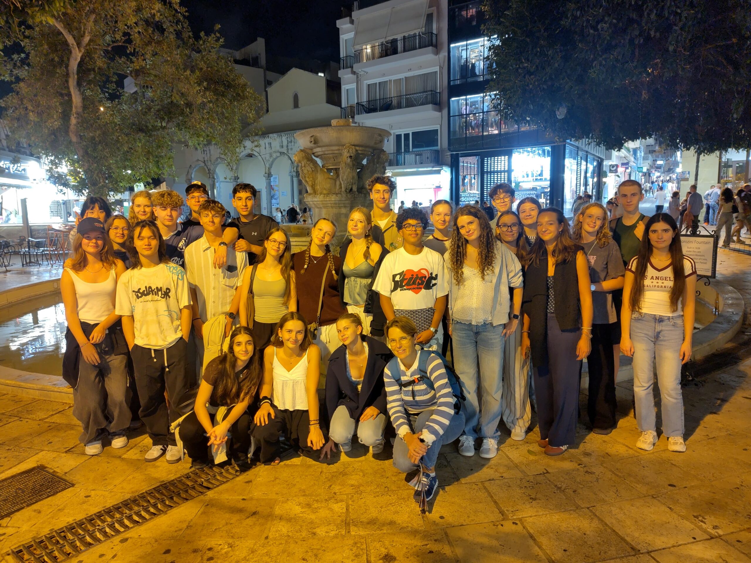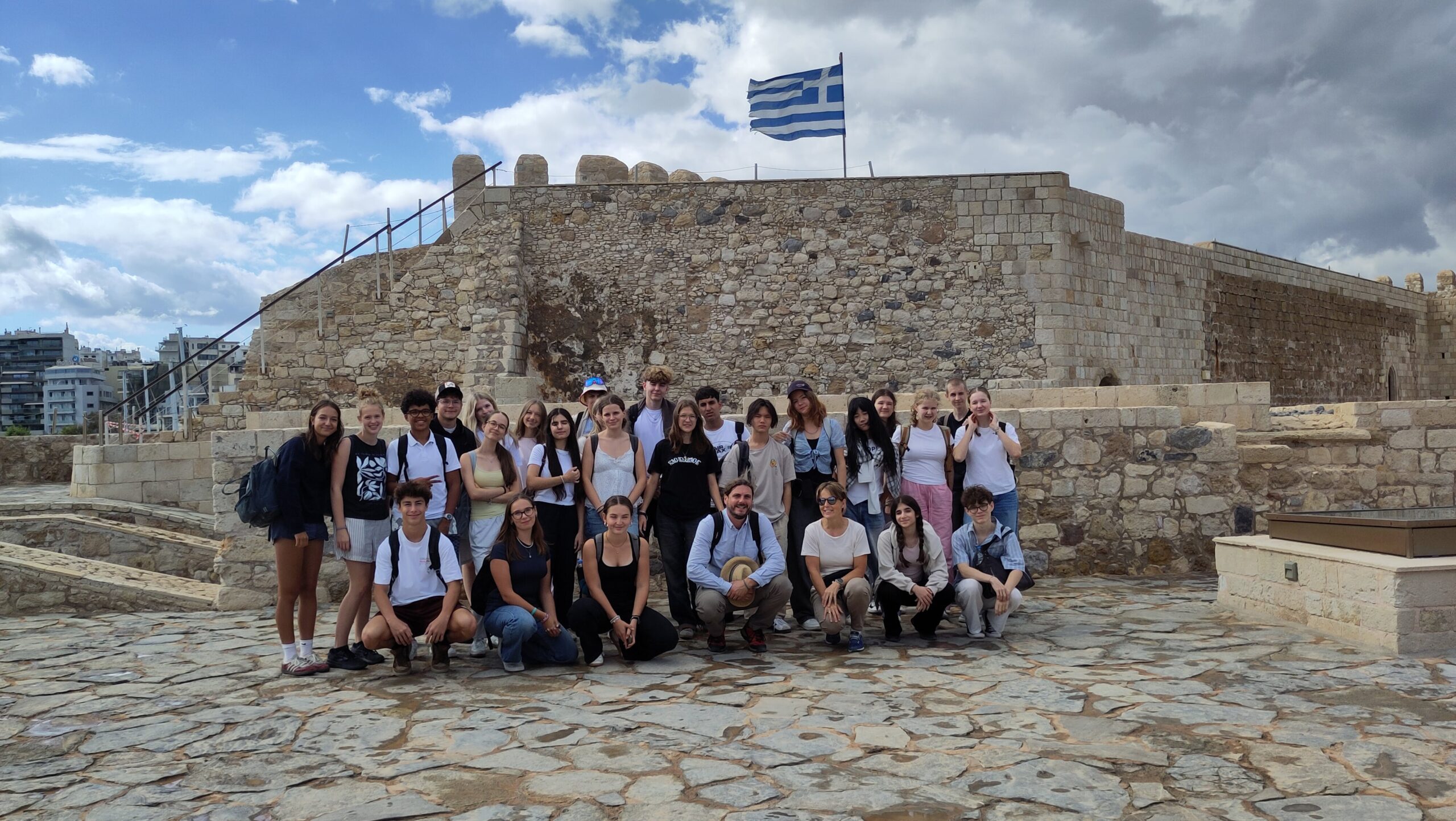 Nach der reibungslosen Anreise am Montag lernten wir die Altstadt bei einem abendlichen Spaziergang kennen und waren schon sehr gespannt auf unseren Schulbesuch am nächsten Tag. Am zweiten Tag besuchten wir voller Aufregung unsere Partnerschule. Es war sehr spannend zu sehen, wie Unterricht, Schulinfrastruktur und Klassen in anderen Ländern aussehen. Nach einer Schulführung lernten wir uns genauer kennen und arbeiteten gemeinsam zum Thema Klimawandel, da an der Partnerschule auch die Universität von Heraklion zu diesem Thema Workshops und Vorträge hält. Dies war besonders spannend, da es perfekt zu unserer SUS Week in Wels passte. Am Nachmittag ging es dann an einen nahe gelegenen Strand gemeinsam mit unseren griechischen Schulfreund*innen. Volleyball, Wasserspaß oder griechische Snacks, alle hatten eine wunderbare Zeit. Am Mittwoch besichtigten wir die eindrucksvollen Ruinen des Palastes von Knossos. Danach ging es gleich weiter mit einer Führung im berühmten Archäologischen Museum mit Schüler* innen aus der Partnerschule. Auch den Nachmittag verbrachten wir mit unseren griechischen Gastgebern, nach Referaten und Präsentationen standen auch das Kennenlernen ihrer Heimatstadt am Programm. Der nächste Tag startete mit einer Busfahrt ins Kloster von Preveli, wir waren sehr beeindruckt von den Gebäuden und auch das Museum war interessant. Danach wanderten wir zu einem besonderen Palmenstrand. Am letzten Tag genossen wir Heraklion und besuchten die prächtige Festung und das bunte Treiben am Hafen.