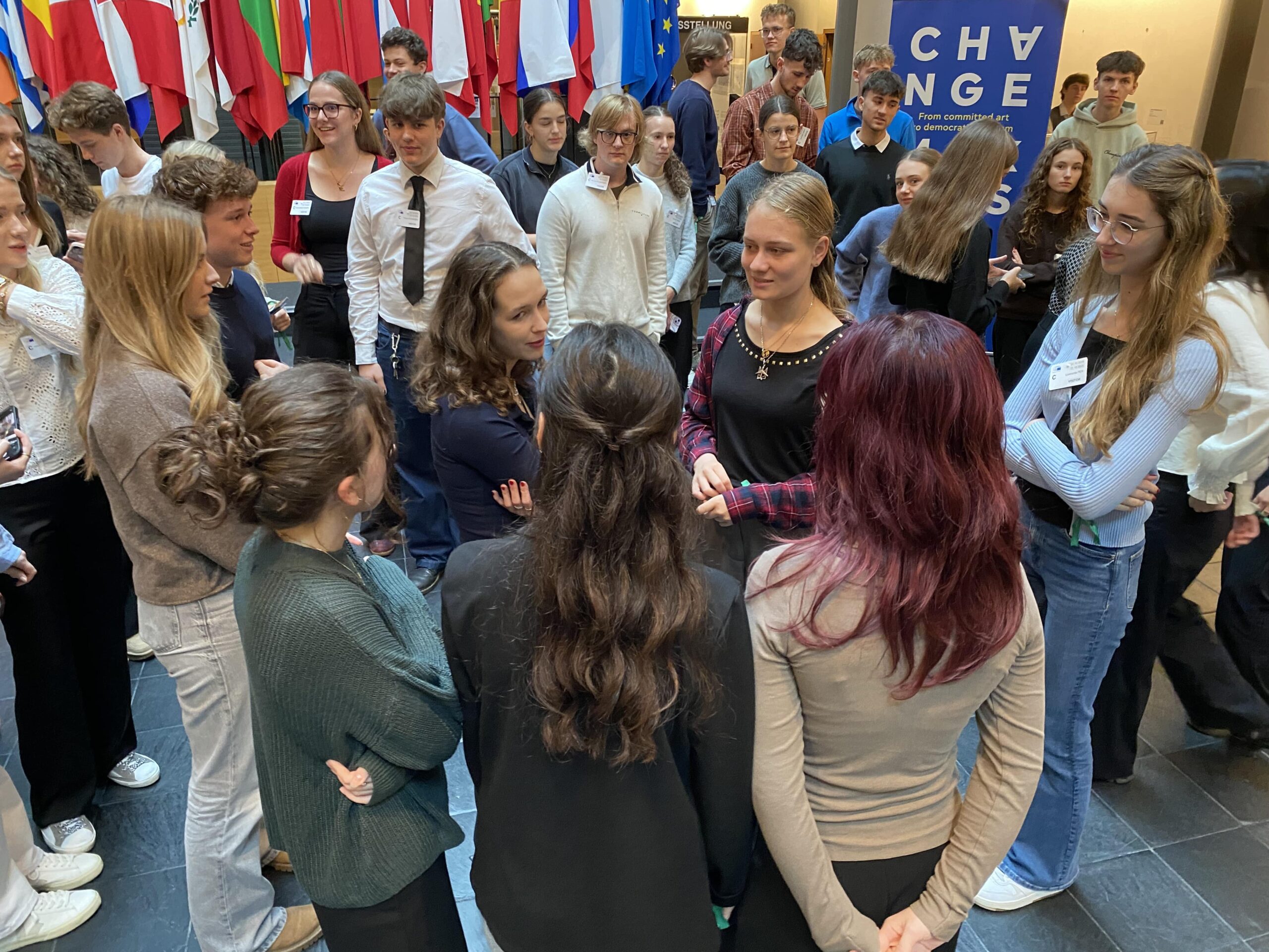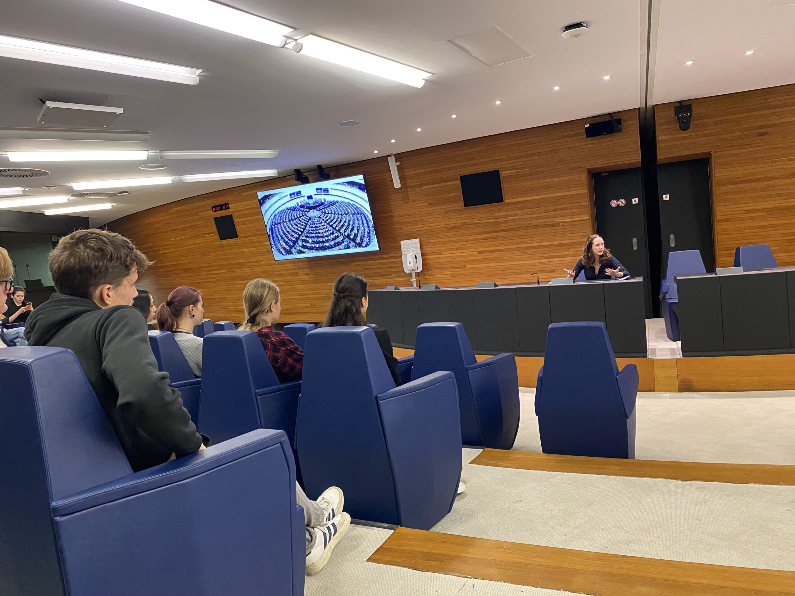 Beim Besuch des Europäischen Parlaments durften wir der Plenarsitzung beiwohnen. Grünen-Abgeordnete Lena Schilling erzählte uns von ihrer Arbeit als EU-Parlamentarierin und beantwortete bereitwillig und interessiert die vielen Fragen unserer SchülerInnen.