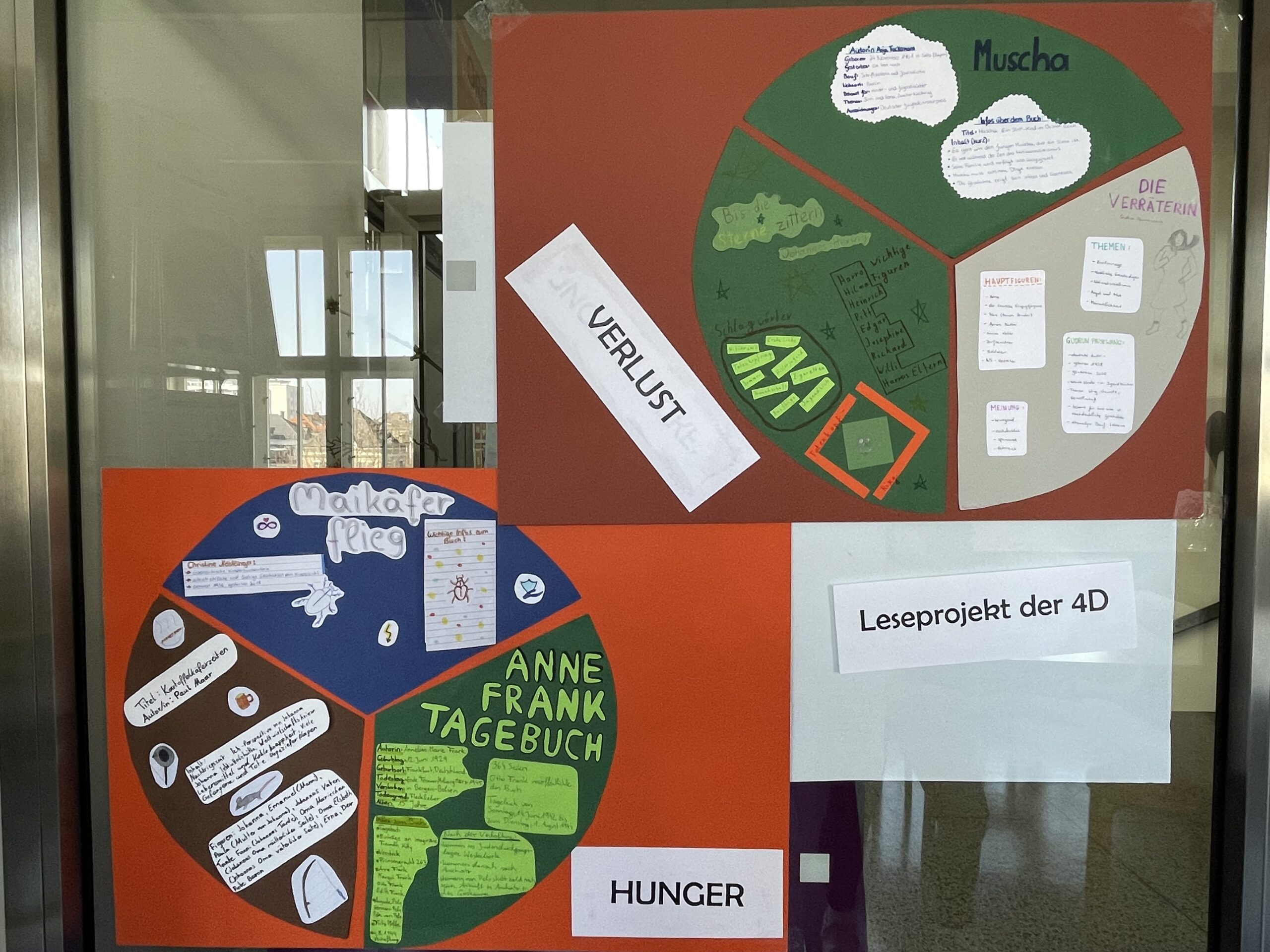 Im Rahmen der WABE fand in der 4D ein Leseprojekt zum Thema „Lebensgeschichten zur Zeit des Nationalsozialismus“ statt. Jeder konnte sich dazu ein Buch aussuchen –Klassiker der Jugendliteratur wie „Lena“ von Käthe Recheis oder aktuelle Neuerscheinung wie „Als die Welt uns gehörte“ von Liz Kessler. Zu jedem Buch wurde ein Plakat gestaltet und in Kleingruppen gesprochen und diskutiert. So konnten wir unterschiedliche Perspektiven auf diese Zeit und Einblicke in schwierige Lebensgeschichten gewinnen. Die Bücher sind für alle in der Bibliothek im Aquarium zu finden und auszuborgen.