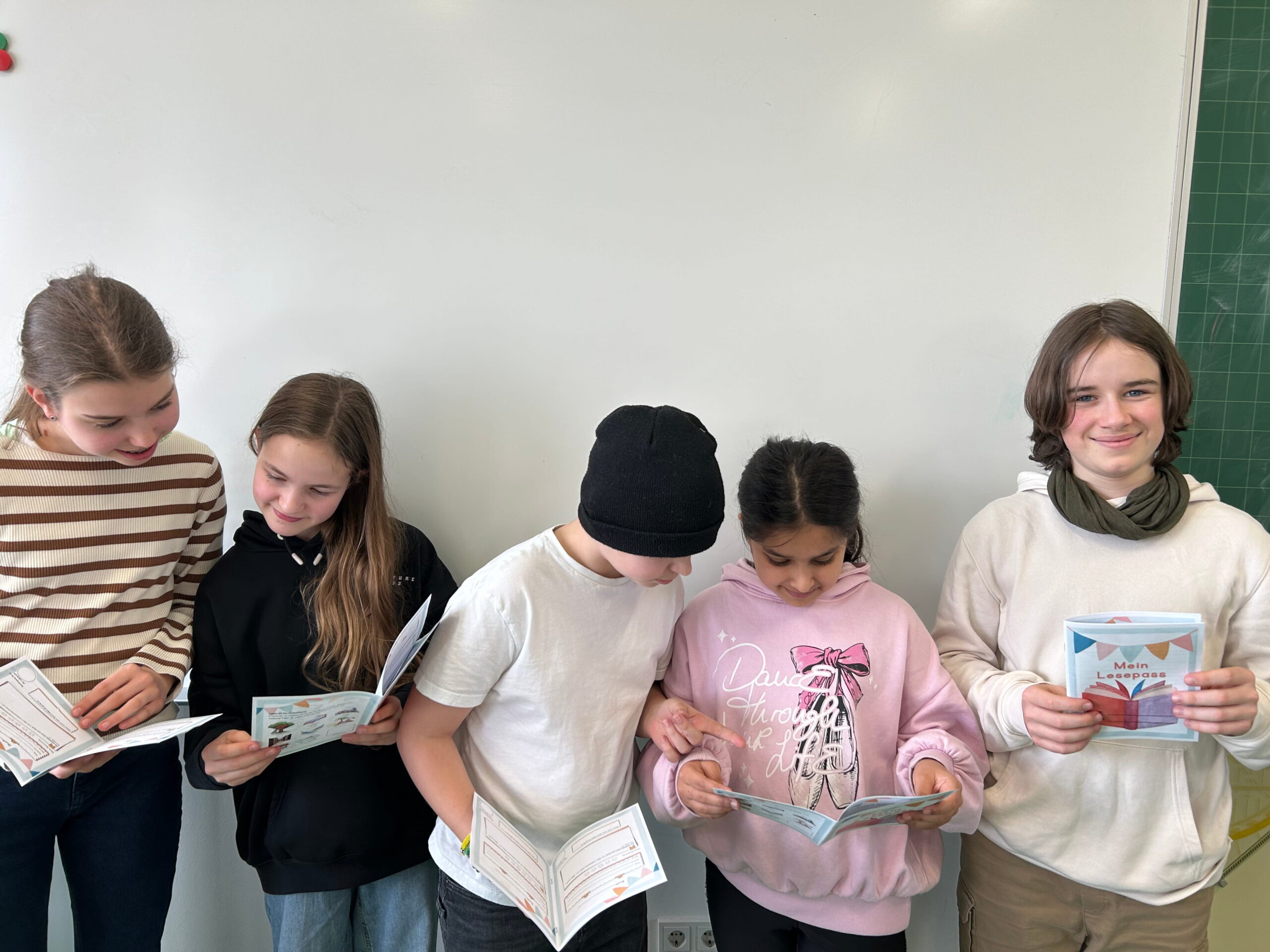 Dafür werden in dieser Woche an jeden Schüler und jede Schülerin aus der Unterstufe ein Lesepass ausgeteilt. Dieser soll in den nächsten drei Monaten mit Titeln von Büchern gefüllt werden, die in der Zeit aus unserer Schulbibliothek ausgeliehen und gelesen wurden. Dabei kann man an Challenges teilnehmen und Preise für zum Beispiel den dicksten Wälzer, die meisten Bücher oder die meisten Genres gewinnen.
