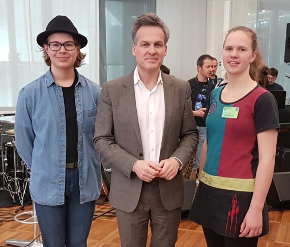 Ida Auzinger und Maximilian Nöhammer waren am 5. März unsere Teilnehmer beim diesjährigen Geschichte-Landeswettbewerb in der Raiffeisen-Landesbank in Linz. Die beiden schlugen sich unter den Besten des Landes der verschiedenen Schultypen sehr eindrucksvoll und so stellte sich Moderator Tarek Leitner gerne für ein Erinnerungsfoto zur Verfügung. Mag.a Ingrid Zobl-M.