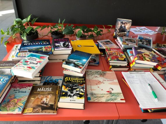 Im Foyer der Schule befindet sich eine kleine Ersatz-Bibliothek für die Unterstufe und die NMS. Schülerinnen und Schüler können hier gerne DVDs und Bücher für sich oder Geschwister ausleihen. In den ersten Wochen bestückt die Schulbibliothek des WRG den Büchertisch, den zweiten Teil stellt dann die NMS zur Verfügung, so wird jederzeit frischer Lesestoff…